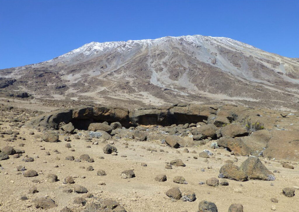 Hiking time: 7 hours | Distance: About 13 km | Habitat: Alpine desert. After spending a night at the Great Barranco Wall (a very imposing sight at first), you make your way up this awesome looking obstacle, which in the end normally turns out easier than what you anticipated. Topping out just below the Heim Glacier, you now appreciate just how beautiful Kilimanjaro really is. The route then heads down through the Karanga Valley over intervening ridges and valleys, and then joins up with the Mweka route. This is the preferred route down from the summit, so remember it. Turn left up the ridge and after another hour or so, you reach Barafu Hut. The last water stop on the route is the Karanga Valley, as there is no water at Barafu camp. Barafu is the Swahili word for “ice” and it is a bleak and inhospitable camping area to spend the night. Totally exposed to the ever-present gales the tents are pitched on a narrow, stony, and dangerous ridge. Make sure that you familiarize yourself with the terrain before dark to avoid any accidents.The summit is now a further 1345m up and you will make the final ascent the same night. Prepare your equipment, ski stick and thermal clothing for your summit attempt. This should include the replacement of your headlamp and camera batteries and make sure you have a spare set available as well. To prevent freezing it will be wise to carry your water in a thermal flask. Go to bed at round about 19h00 and try to get some precious rest and sleep