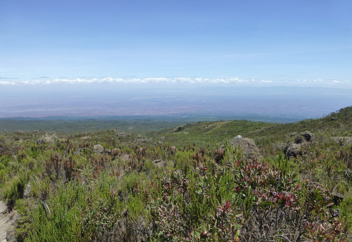 Hiking time: 6 hours | Distance: About 9 km | Habitat: Moorland You rise early at Machame camp and after breakfast you climb an hour or so to the top of the forest and then for 2 hours at a gentler gradient through the moorland zone. After a short lunch and rest, you continue up a rocky ridge onto the Shira plateau. By now you will be able to see in an easterly direction, the Western Breach with its stunning glaciers. You are now due west of Kibo and after a short hike you will reach the Shira campsite at 3 840m. The porters will boil drinking and washing water, before serving dinner. The night at this exposed camp will even be colder than the previous night, with temperatures dropping to well below freezing
