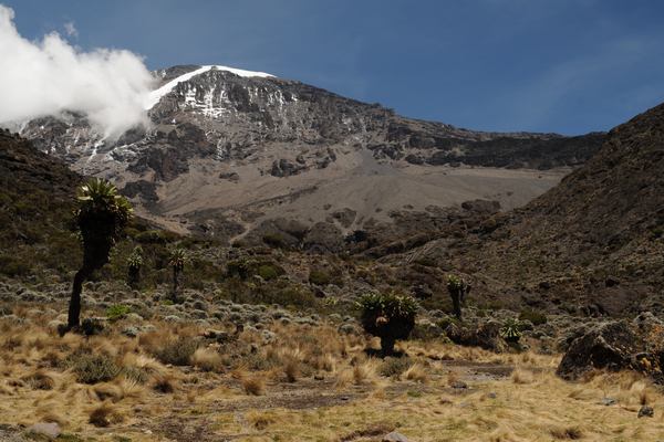 On this day the trekking hours will be about 6-7 hours trek through the heather will bring you to second caves. At this point you will have your hot lunch and relax for like 45min as you take lunch, if the weather is clear, Mawenzi will be in plain view; a stunning sight. Enjoy stopping to see the exotic heather-zone flowers and plants which grow alongside the trail. A smaller track leads off the main trail through the moorland and towards Mawenzi. The trekking time is about 6-7 hours. The camp is surrounded by a landscape of bizarre plants and rock formations and caves. Dinner and overnight in Kikelewa Camp